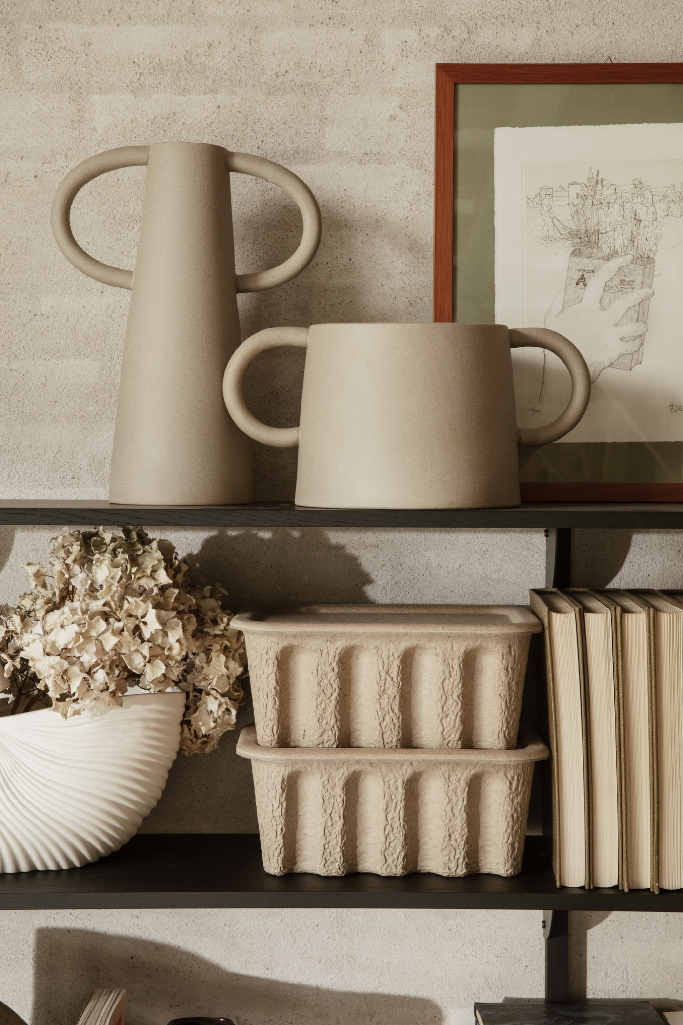 Past and present fuse together in the Anse Pot. Made from a special, rustic clay, the pot’s raw sand colour and rough texture is pleasantly contrasted by its clean, cylindrical shape. A set of hand-formed handles recalling traditional pottery completes the unified expression.