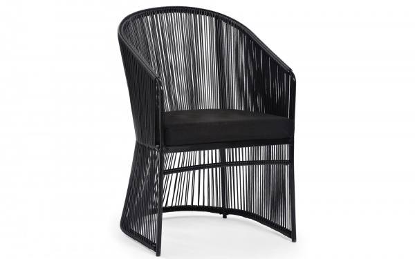 This collection includes chairs, sofas, ottoman, day bed and tables made of varnished aluminum decorated with hand-woven synthetic fiber rope. The coffee tables features marble or HPL tops.