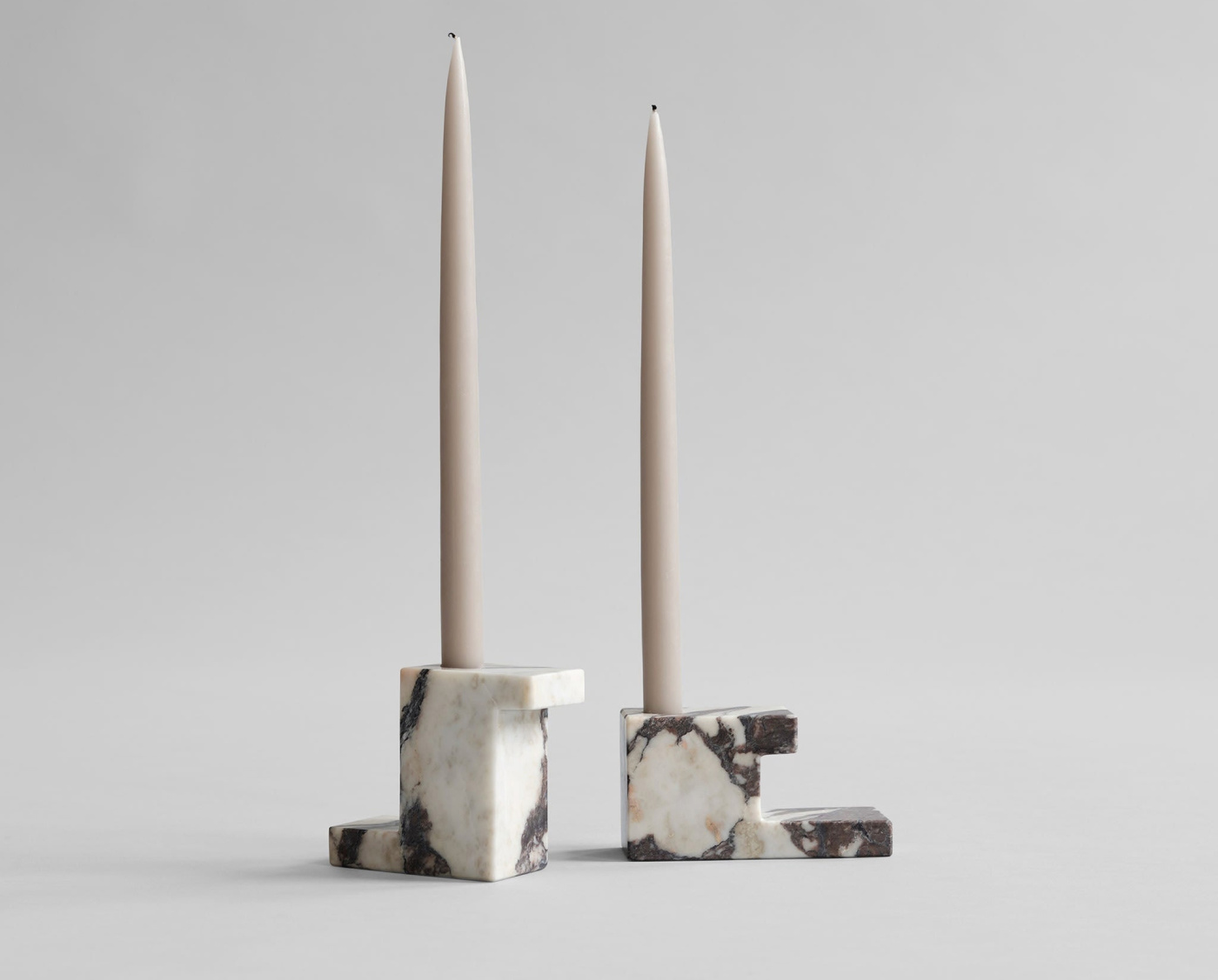 Inspired by architectural building components, the Brick Candle Holders is made of exquisite solid marble, elegantly carved in sharp geometric shapes. Each candle holder is completely unique, emphasising the rich and beautiful patterns of natural stone. The polished surface softly reflects the light from the candle, adding a warmth to the Brick Candle Holders. Brick comes in two shapes and sizes, complementing each other in an architectural composition or stand alone as sculptural object. Designed by Kristian Sofus Hansen & Tommy Hyldahl