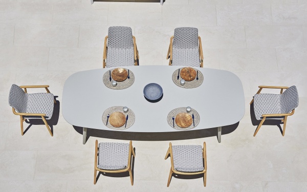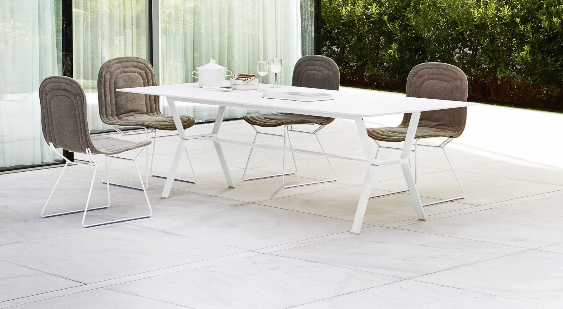 Simple but strong Deer dining table has modern design featuring a flat steel base. It is available with a wide choice of tops and powder coats finishes.