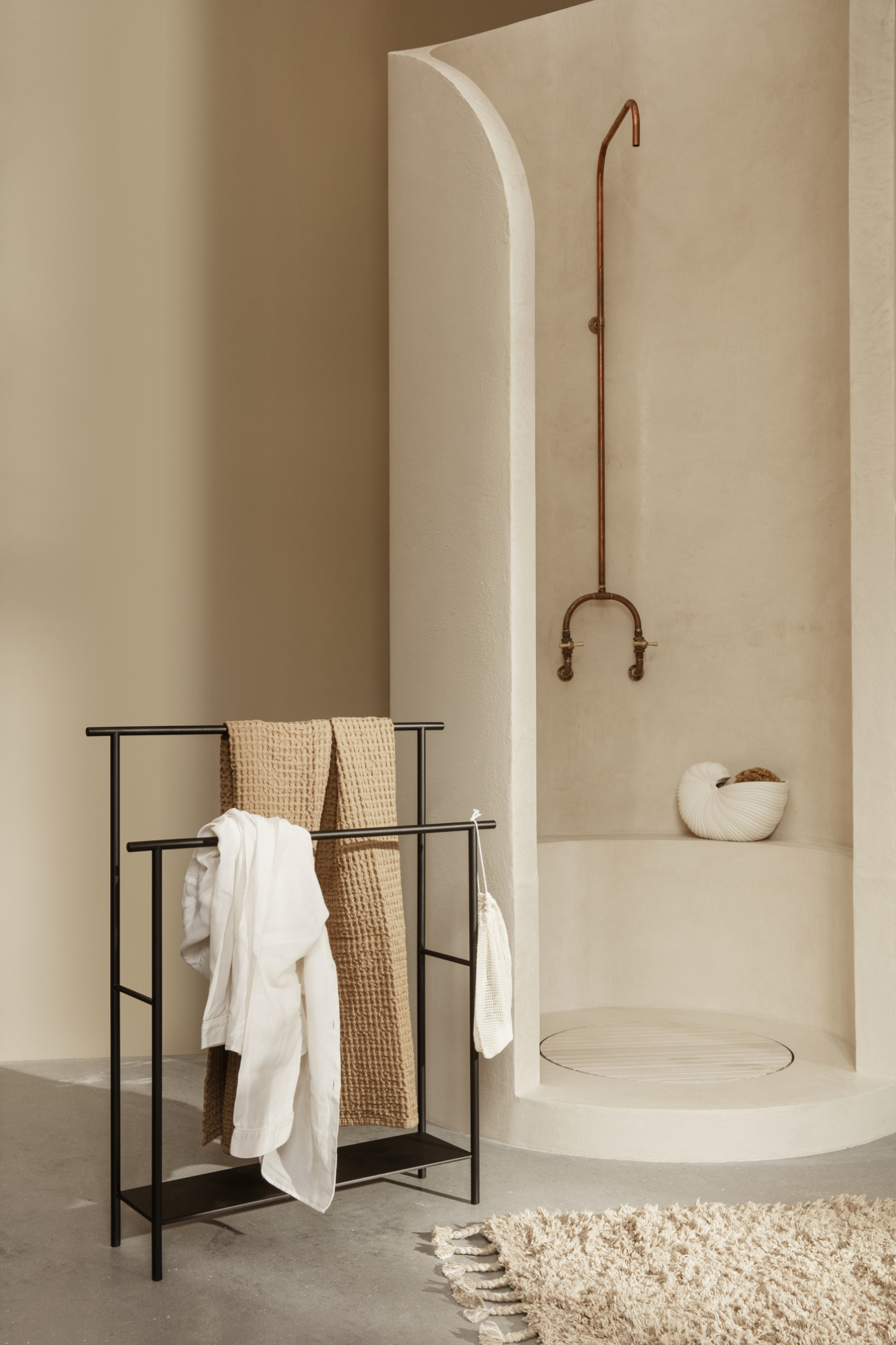 Originally consisting of just the Dora Clothes Stand, the Dora family has expanded to include a series of freestanding furnishings that are ideal for bathroom. Made from powder-coated metal, the simple yet functional designs are rust-resistant, so are ideal for use in damp conditions. The Dora Towel Stand allows you to hang several towels at once, as well as providing you with extra storage space below.