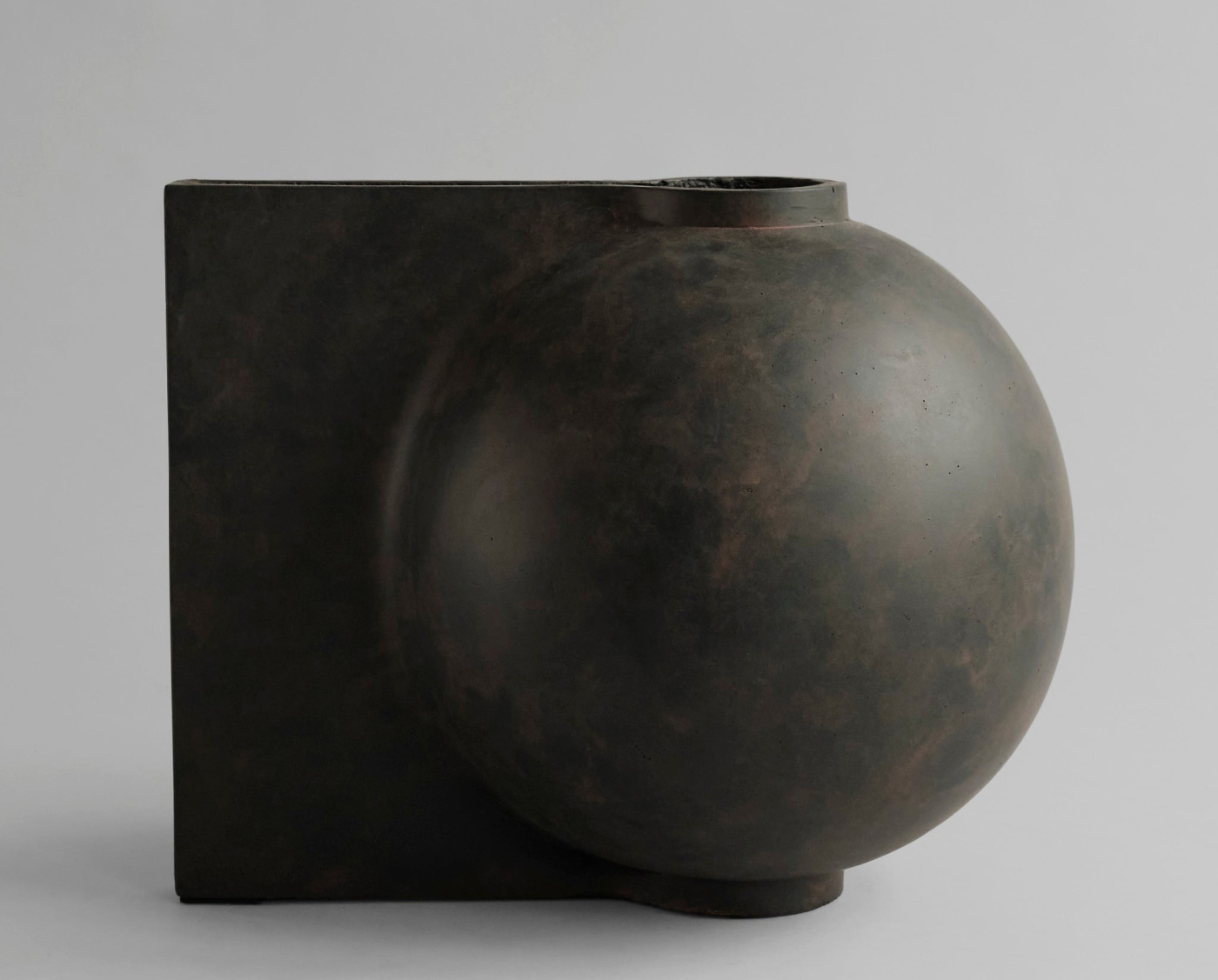 Like a design process frozen in time, the Offset vase is a distortion of the familiar rounded shape being cut. It challenges the idea of a vase and drastically changes appearance depending on the angles it is viewed from: From an imitation of a traditional vase to a sculptural object. Offset is made from fiber concrete and comes in two sizes. As it is a hand glazed natural product, the colours may vary slightly and as it is not 100% waterproof, a bag for fresh flowers is included. Designed by Nicolaj Nøddesbo & Tommy Hyldahl.
