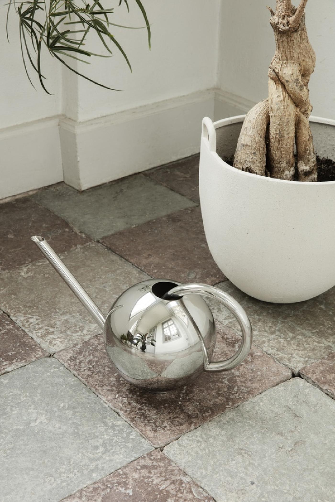 Deploying a sphere as the body, this watering can is able to hold up to two litres of water despite its small size. The Orb Watering Can presents a clean design with the charismatic detail of the handle continuing through the top hole. Its details form a sculptural piece, which you can put on display rather than hide in between watering your plants.