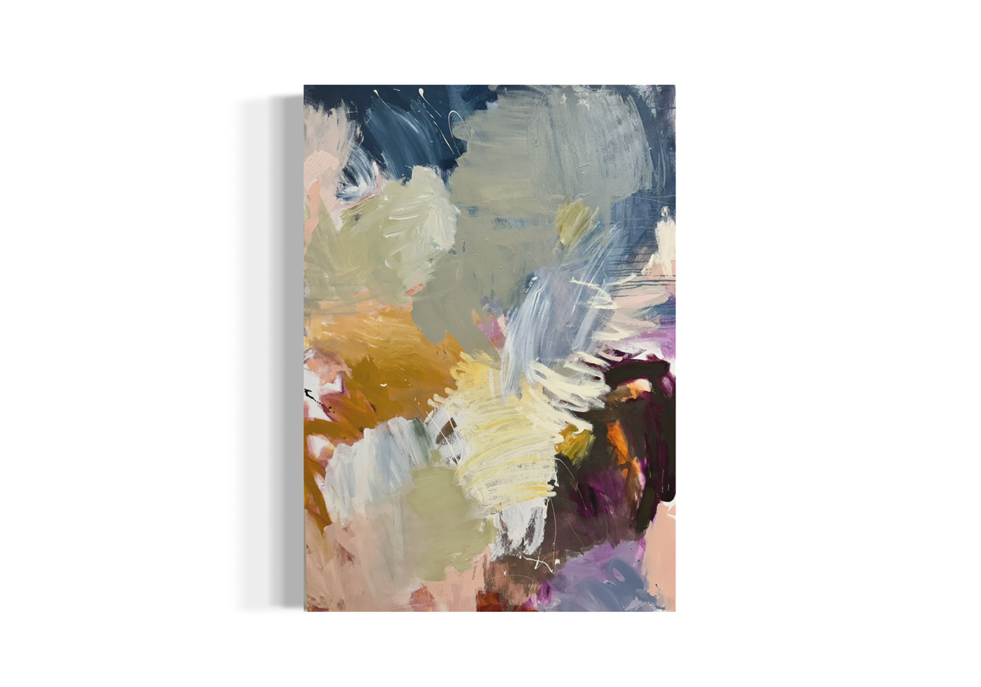 My colour schemes often include muted, vibrant tones to evoke a brief sensation of nostalgia and playfulness. I use a variety of surfaces when I paint, including French papers, Australian cotton canvas, and raw Belgian linen. For some of my works, I also use texture mediums, oil sticks, watercolours and Indian ink to push my imagination even further