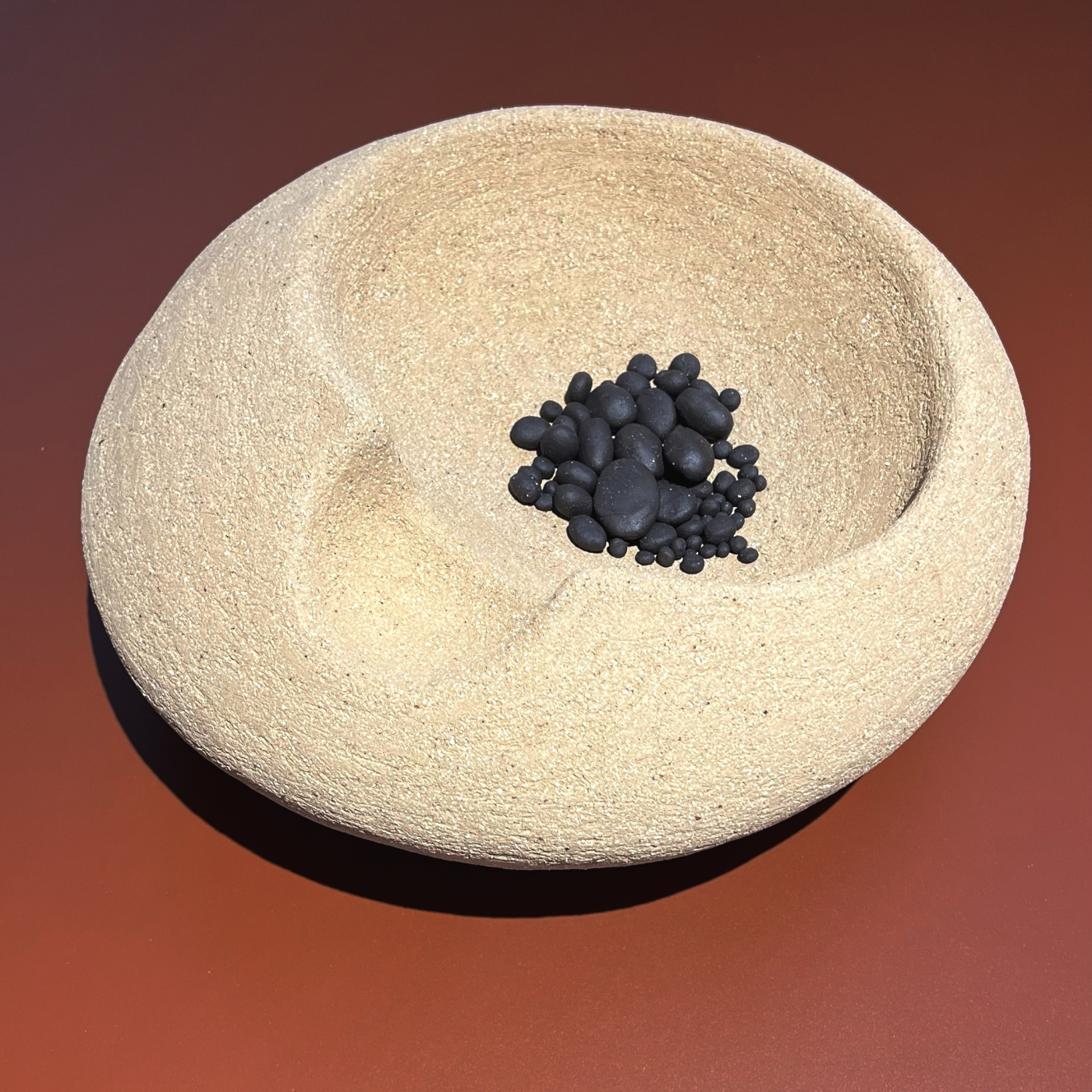 Rock Pool No3. by Charmain Hearder Material: Buff Stoneware Contains Dark Brown Pebbles