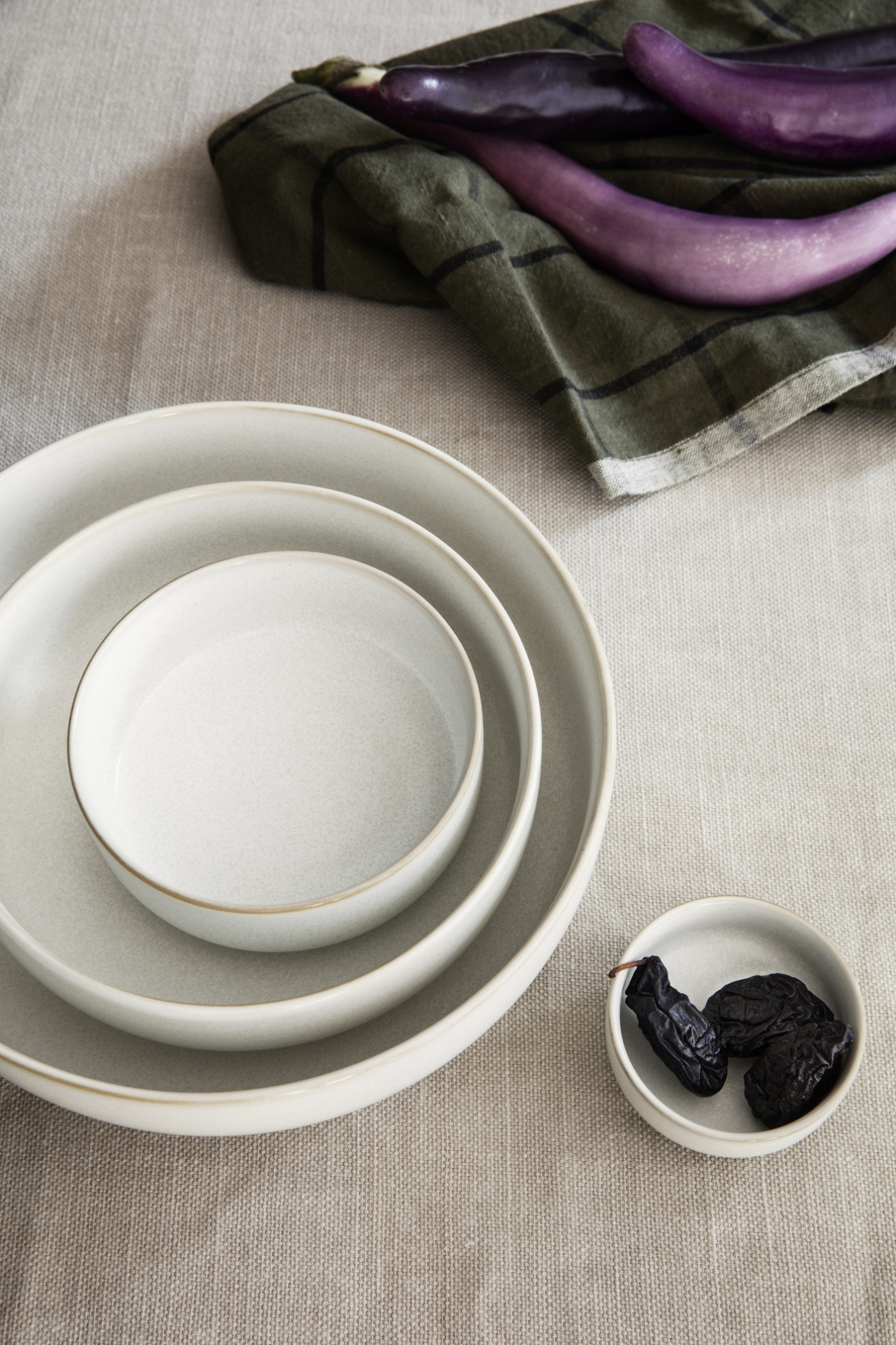 Rediscovering the magic of traditional manufacturing, the cream-coloured glazed Sekki Bowls with tiny grey speckles and a glorious surface, draw a straight line to the rich Japanese ceramic heritage. The simple shape lets the material with a remarkable feel make up the contemporary expression, while the elegant foot elevates the design, adding a floating expression to the bowls.