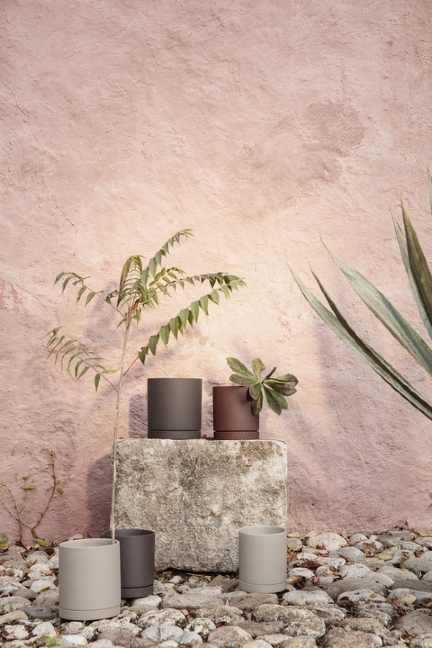 Rediscovering the magic of ancient manufacturing, the Sekki Pots are made from clay and show off its remarkable coarse texture. The matching saucer extends the pot's dimensions, uniting the two pieces into one simple yet elegant form.