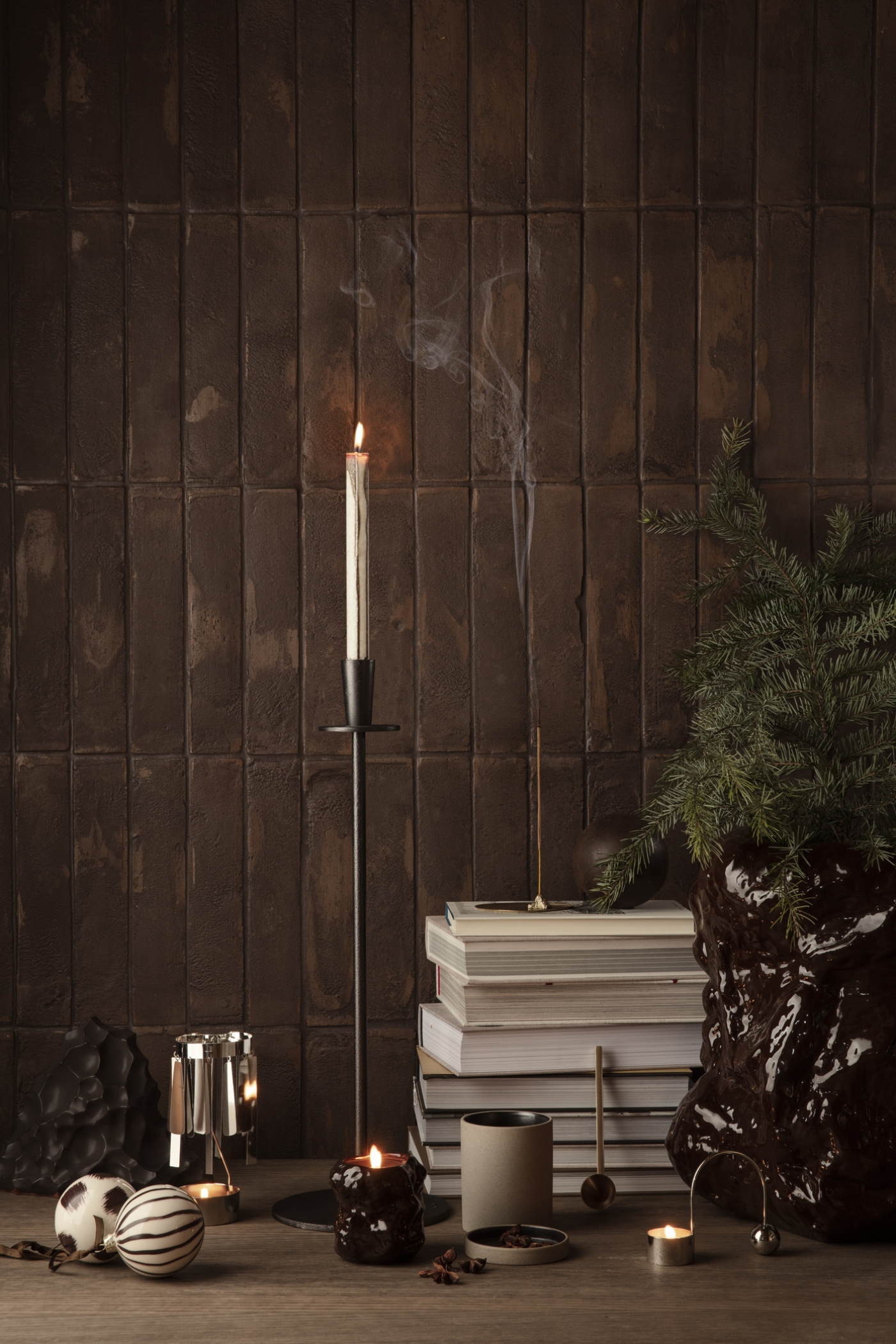 Scents drive memories and emotions, and they can be essential in setting the mood. To help you balance an atmosphere or creating a space of tranquillity in your everyday life, we have designed a simple incense burner. Made from natural brass, the holder of every incense stick is a cast stone, and the tray make sure to pick up the ashes from the incense sticks.