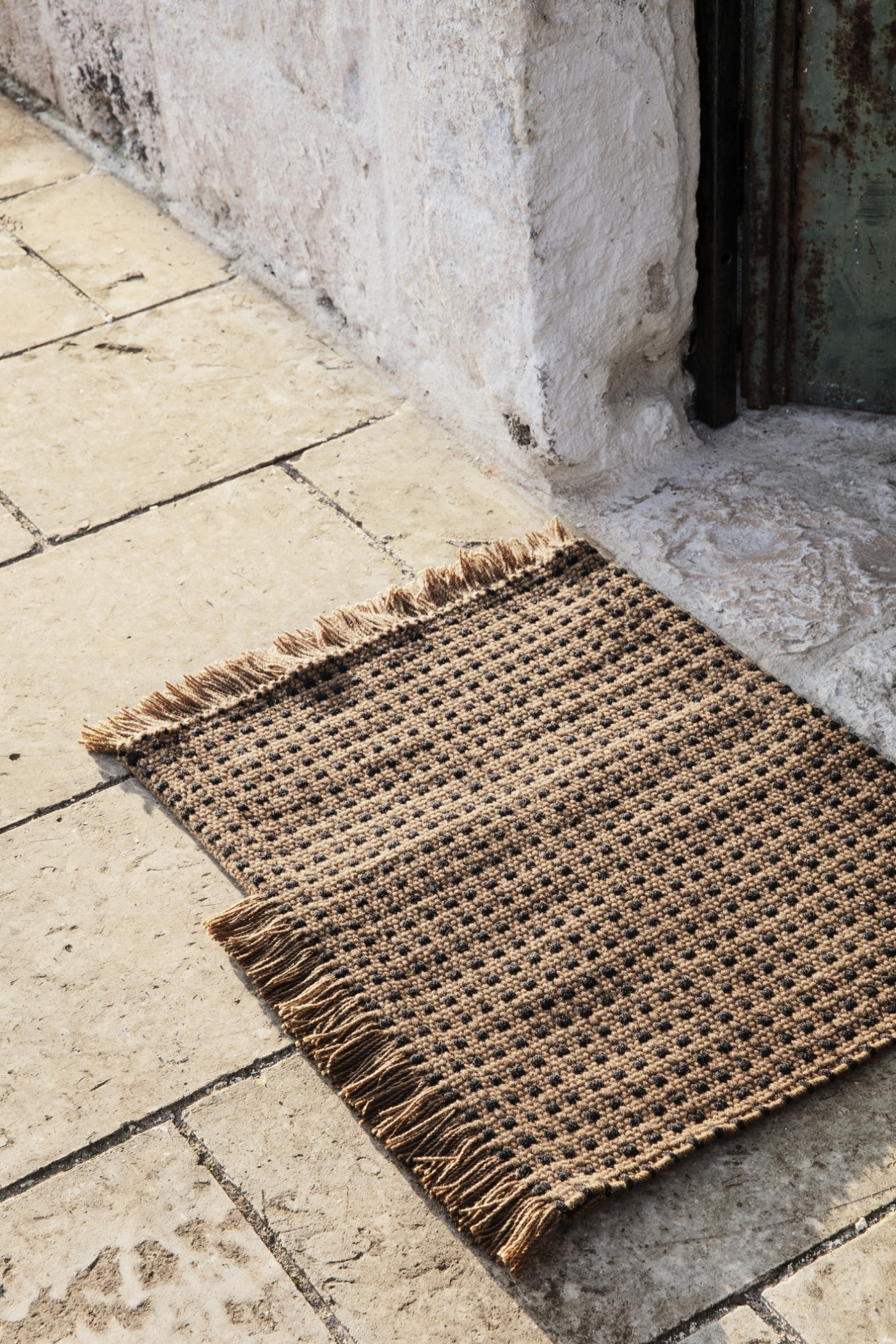 Our Way series of rugs, runners and cushion covers puts post-consumer plastic waste to good use: each sustainable design is made from recycled PET yarn woven into a two-tone design with a tactile, yet durable finish. With its timeless checkered pattern and asymmetrical fringes, the mat achieves a classic look with a twist.