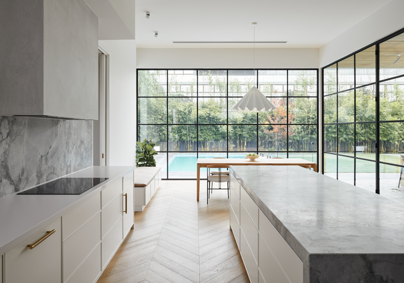 Located in the inner-city eastern suburb of Dulwich, this beautifully renovated bungalow by Rebecca Ryan Architect and Imperium Constructions. The full height windows flood the open plan living and dining room with natural light and maximise the feeling of space. The furniture concept softens and enhances the liveability of the space in a sleek and sophisticated way and the careful selection of furniture and fabrics maintains a comfortable family friendly environment.